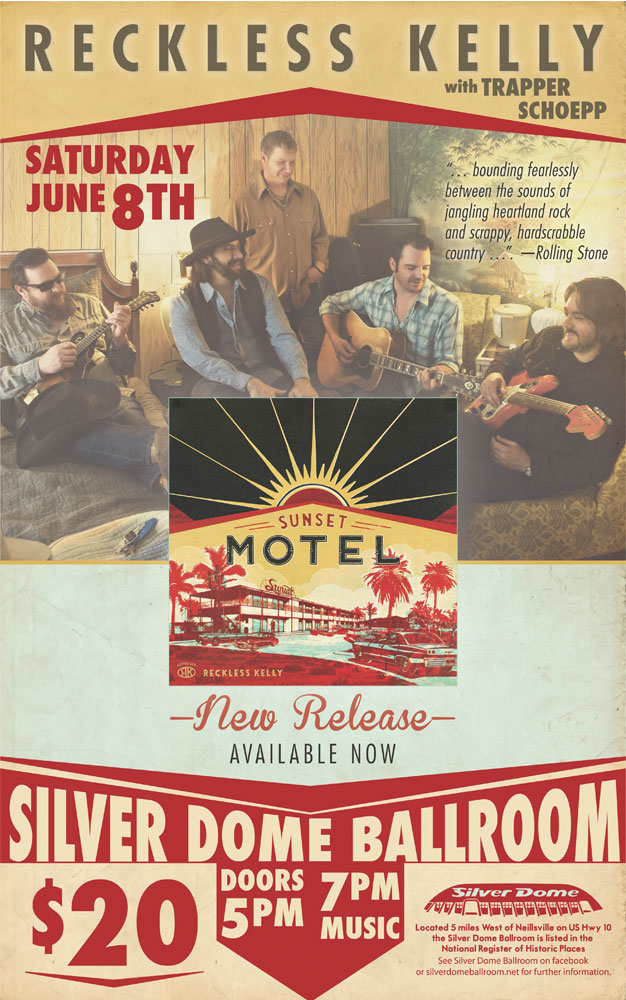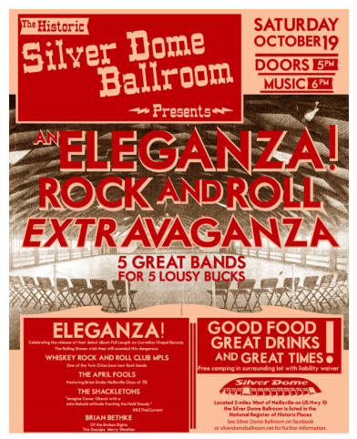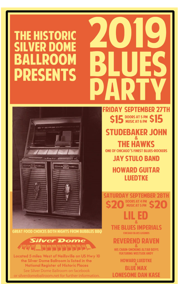 Hello fans of the Silver Dome, and welcome back for our September series of outdoor micro shows (capacity 50, well-spaced, etc.) from a small flatbed trailer behind the ballroom.
