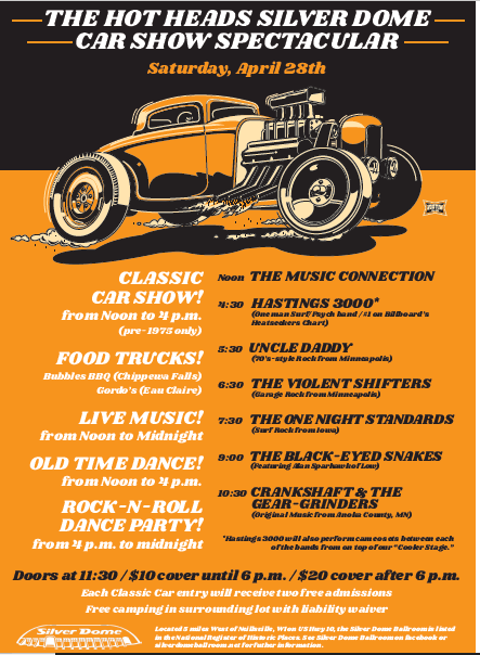 CRANKSHAFT – Alex “Crankshaft” Larson is a Mpls./St. Paul-based singer-songwriter and guitarist who plays a brand of Roots-Rock and Blues that he simply describes as “Original Music from Anoka County, Minnesota.” He often plays with his band, The Gear-Grinders, but for this show, he will be performing his “one-man-band” routine, simultaneously playing guitar and drums/percussion, from on top of our “cooler stage,” located behind and above the Silver Dome’s circular bar. Our “cooler stage” has become a popular way to start any evening of music, offering a great visual as well as musical experience, and Alex is always a great party-starter.
