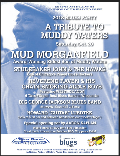HOWARD “GUITAR” LUEDTKE – Chippewa Falls resident, Howard Luedtke, is widely regarded as one of Wisconsin’s finest Blues guitarists, singer-songwriters and performers. Howard will open the festivities on Friday, October 20th, with a free, solo performance from about 7 – 10 pm, also from high atop our “cooler stage.” Again, the “cooler stage” offers a tremendous visual as well as musical experience and did we mention that this pre-party was FREE, FREE, FREE?!